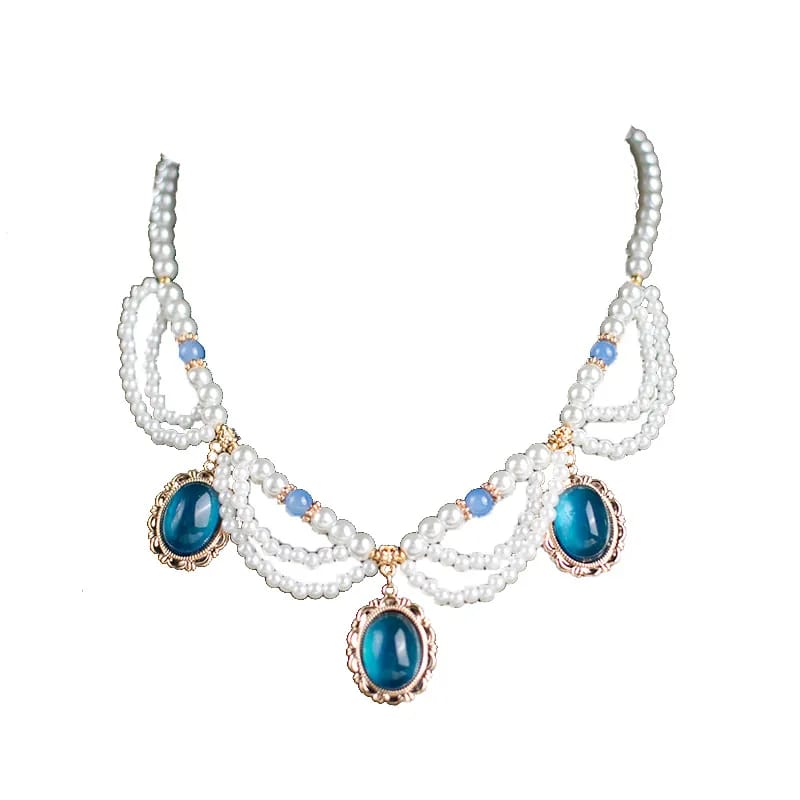 Elegant ancient-style multi-layer artificial pearl necklace inspired by palace and Dunhuang design. Perfect for hanfu, traditional outfits, and cultural wear.